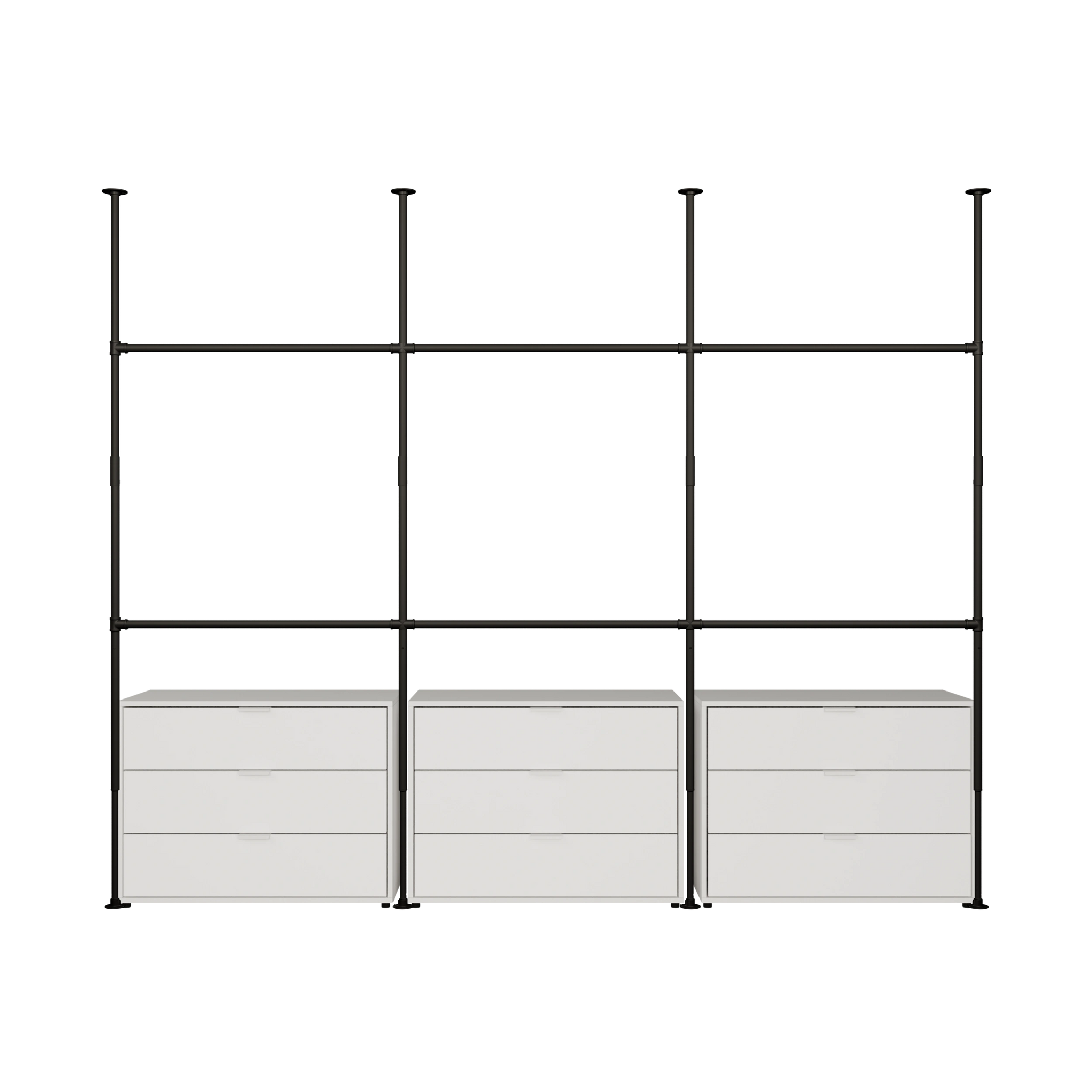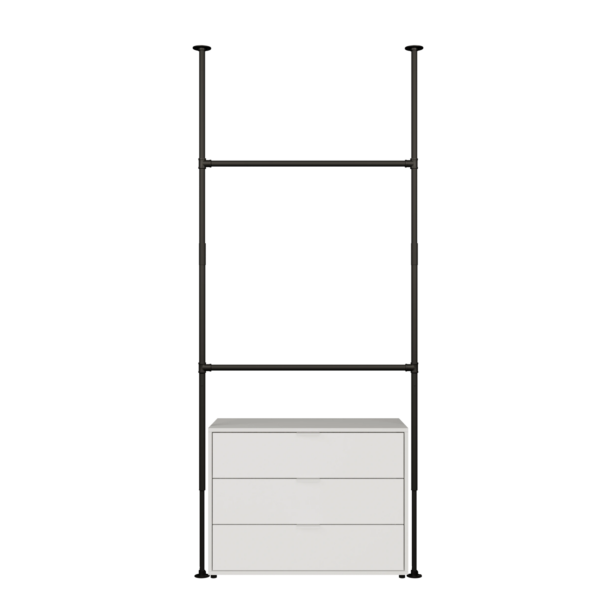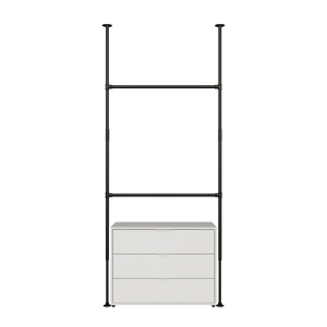Vår KIM-serie kan ikke bare brukes som et blikkfang i inngangspartiet for å henge opp alle jakker, men også som en klesstang for å innrede omkledningsrommet ditt. Vår KIM gir deg muligheten til å utvide plass etter behov. Velg enten den smale KIM I med en bredde på 105cm, eller dobbel opphengsmulighetene med en ekstra tverrstang med KIM I Double. Ser du etter en større klesstang – KIM II gir deg dobbelt bredde med 203cm, noe som gir plass til 70 bluser og T-skjorter. Ikke nok? Ingen problem: Vår KIM III er perfekt for alle moteelskere og gir deg 301cm opphengsplass for klær, frakker og tilbehør, samtidig som du alltid har perfekt oversikt. Også vår KIM II og KIM III kan utvides med ekstra tverrstenger og kan tilpasses dine nåværende behov. Takket være veggmonteringen kan du også henge opp tunge plagg på vår KIM uten å være redd for at de skal falle ned eller bøye seg.