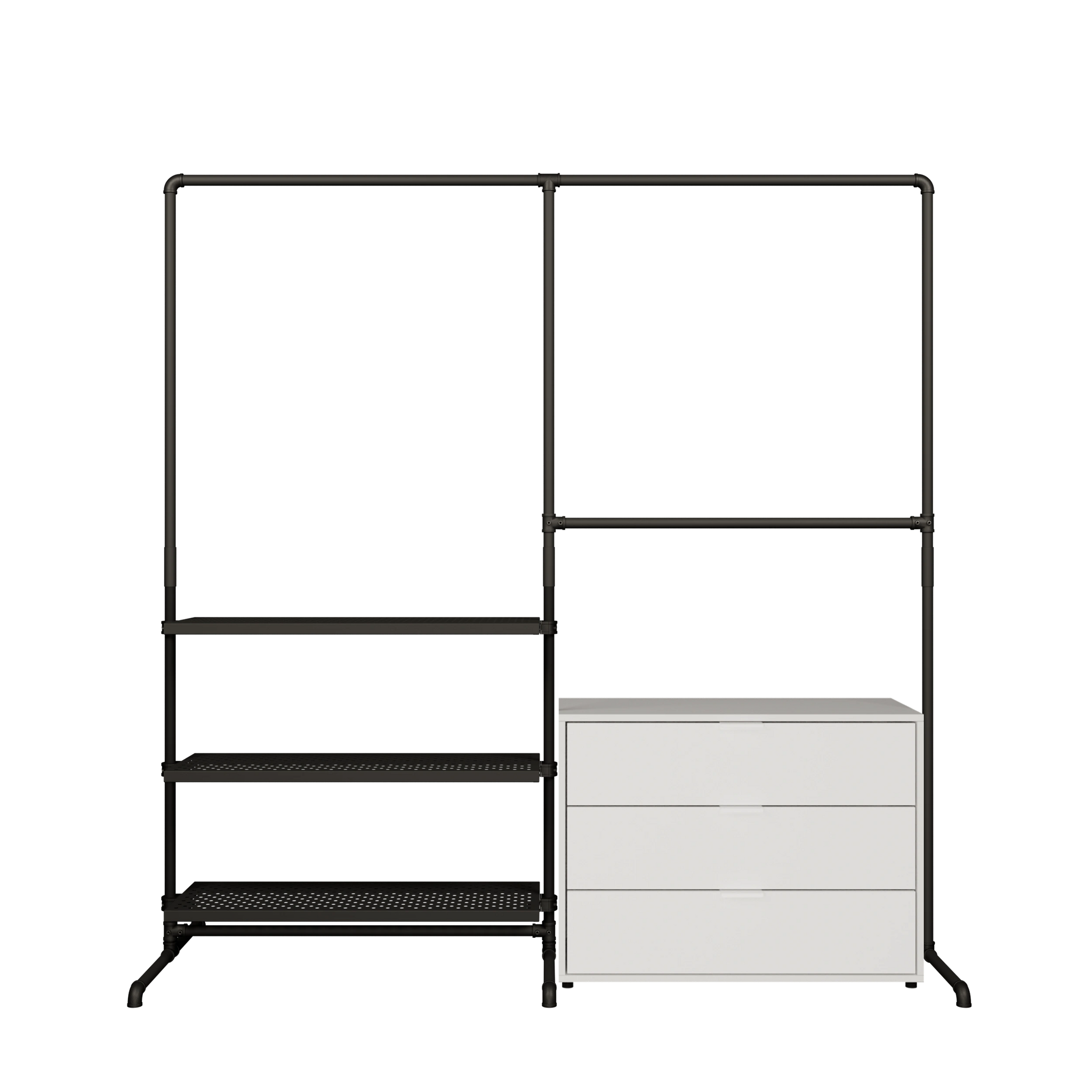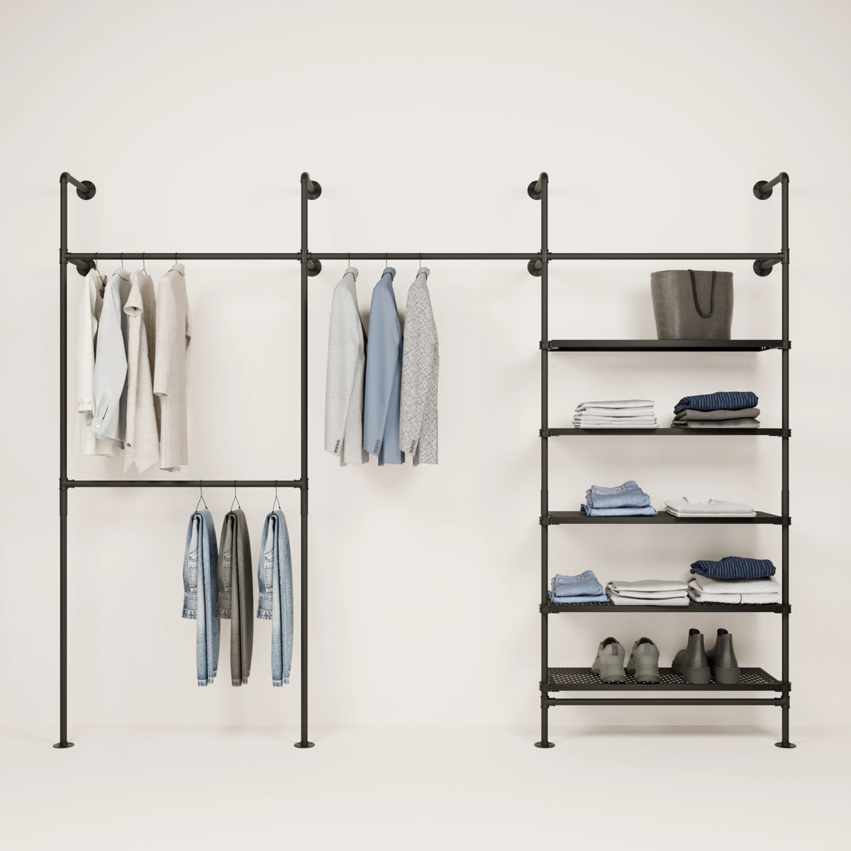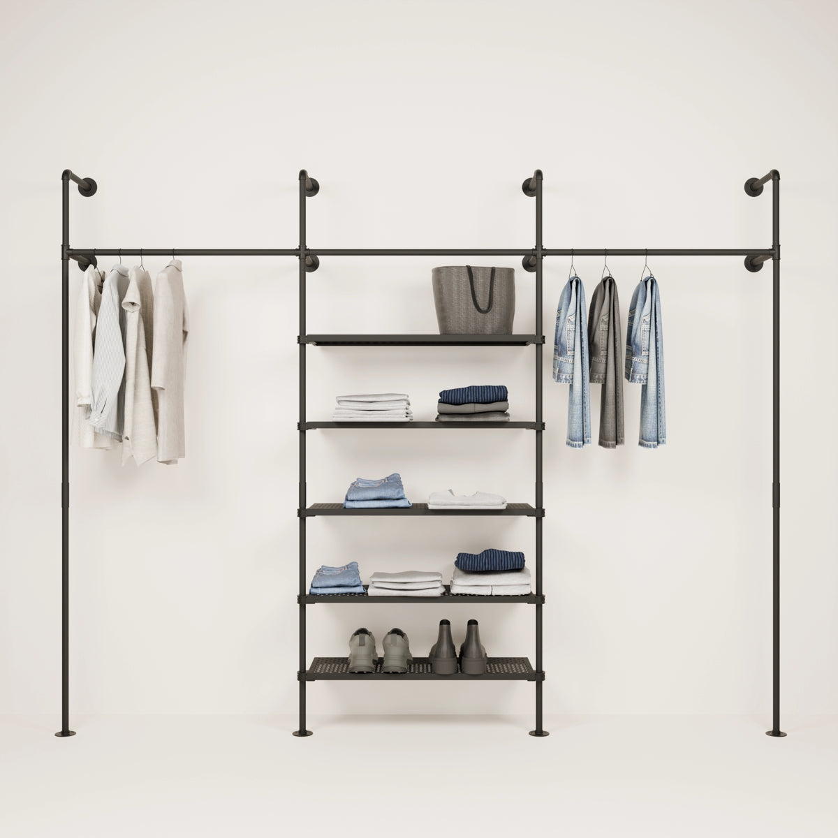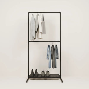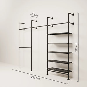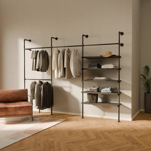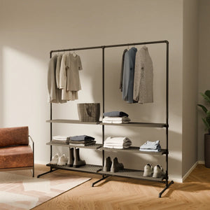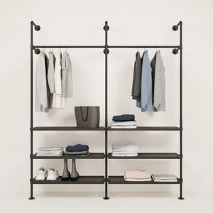 Bruken av vannrør og metallhyller som materialer for våre åpne klesskap gjør dem spesielt robuste og holdbare, og de kan derfor enkelt bære tyngre klær og gjenstander som sko og vesker. De er også veldig enkle å vedlikeholde og kan enkelt tørkes av med en fuktig klut.