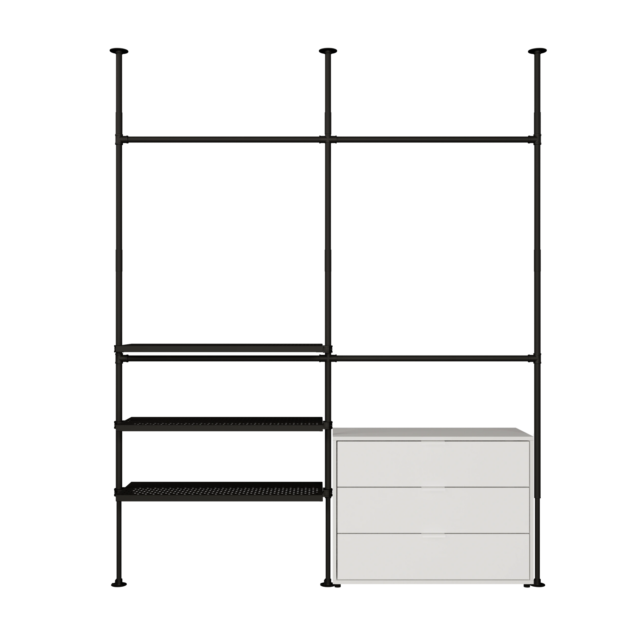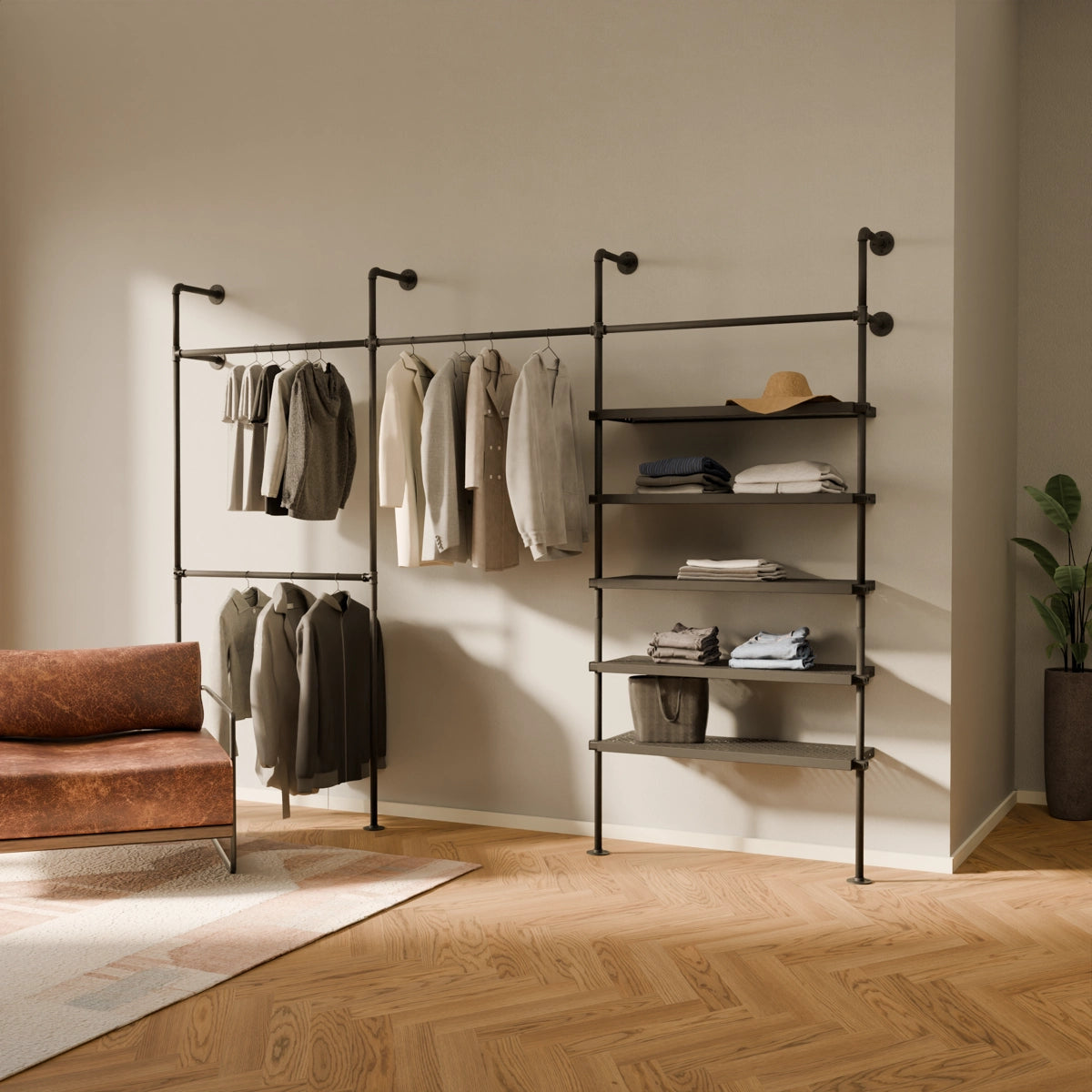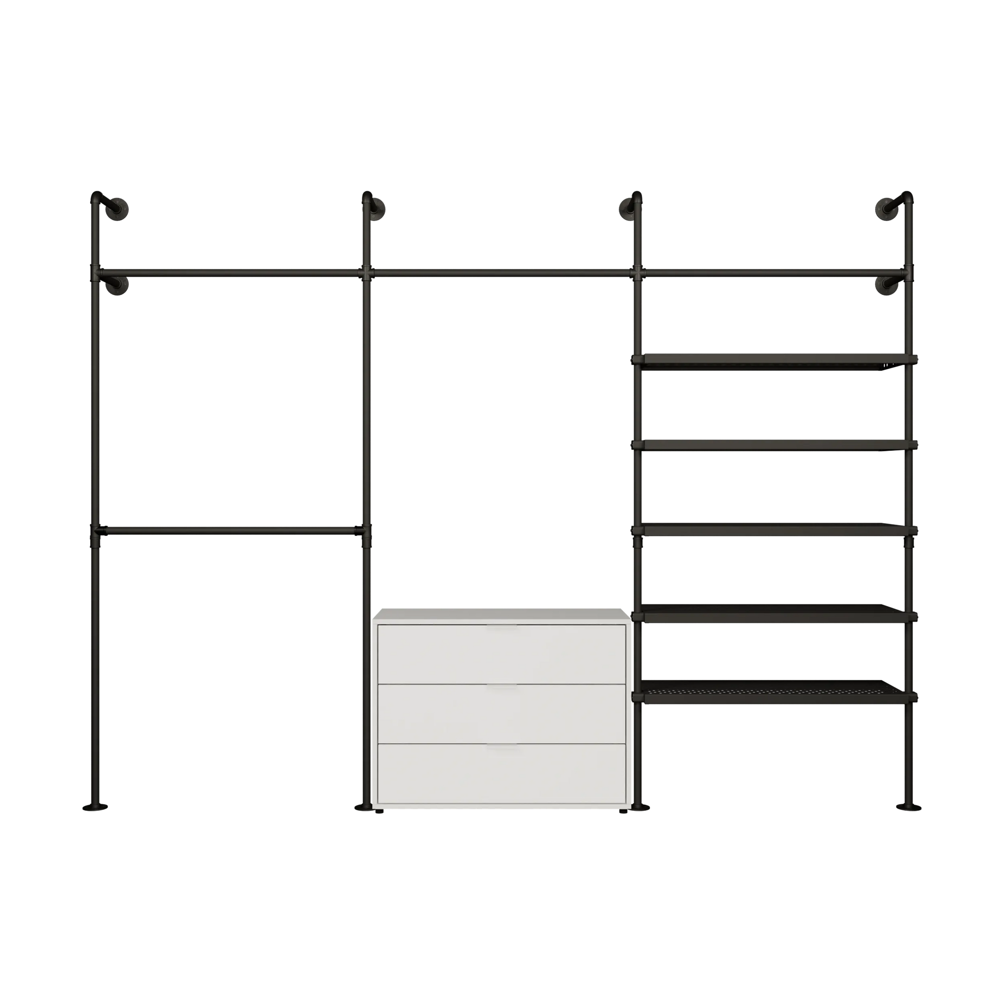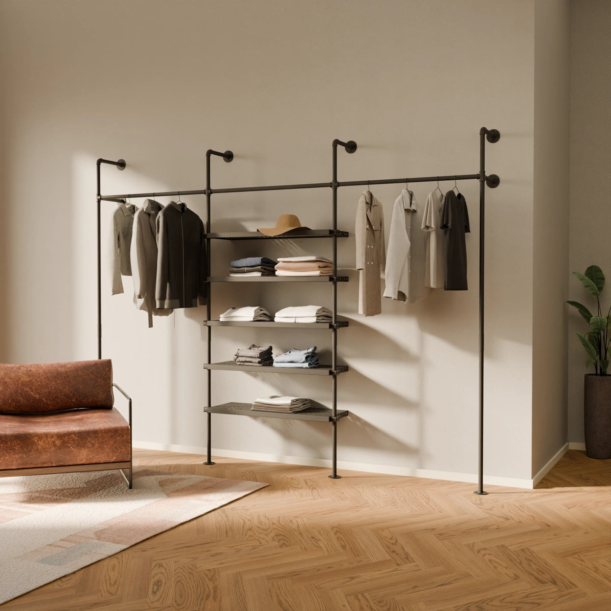 Bruken av vannrør og metallhyller som materialer for våre åpne klesskap gjør dem spesielt robuste og holdbare, og de kan derfor enkelt bære tyngre klær og gjenstander som sko og vesker. De er også veldig enkle å vedlikeholde og kan enkelt tørkes av med en fuktig klut.